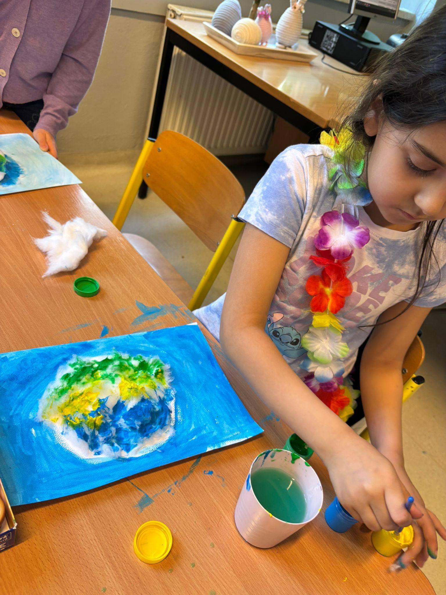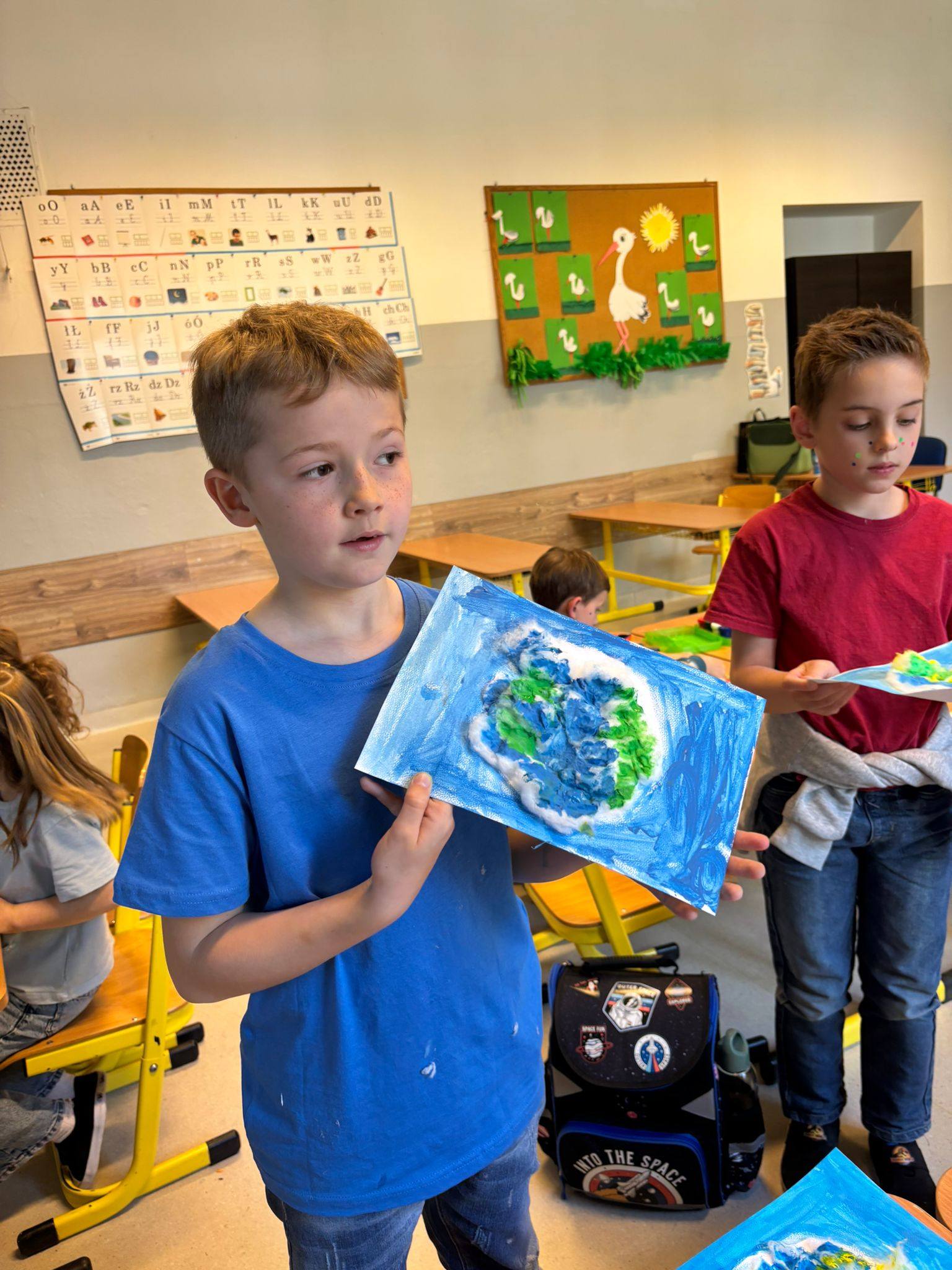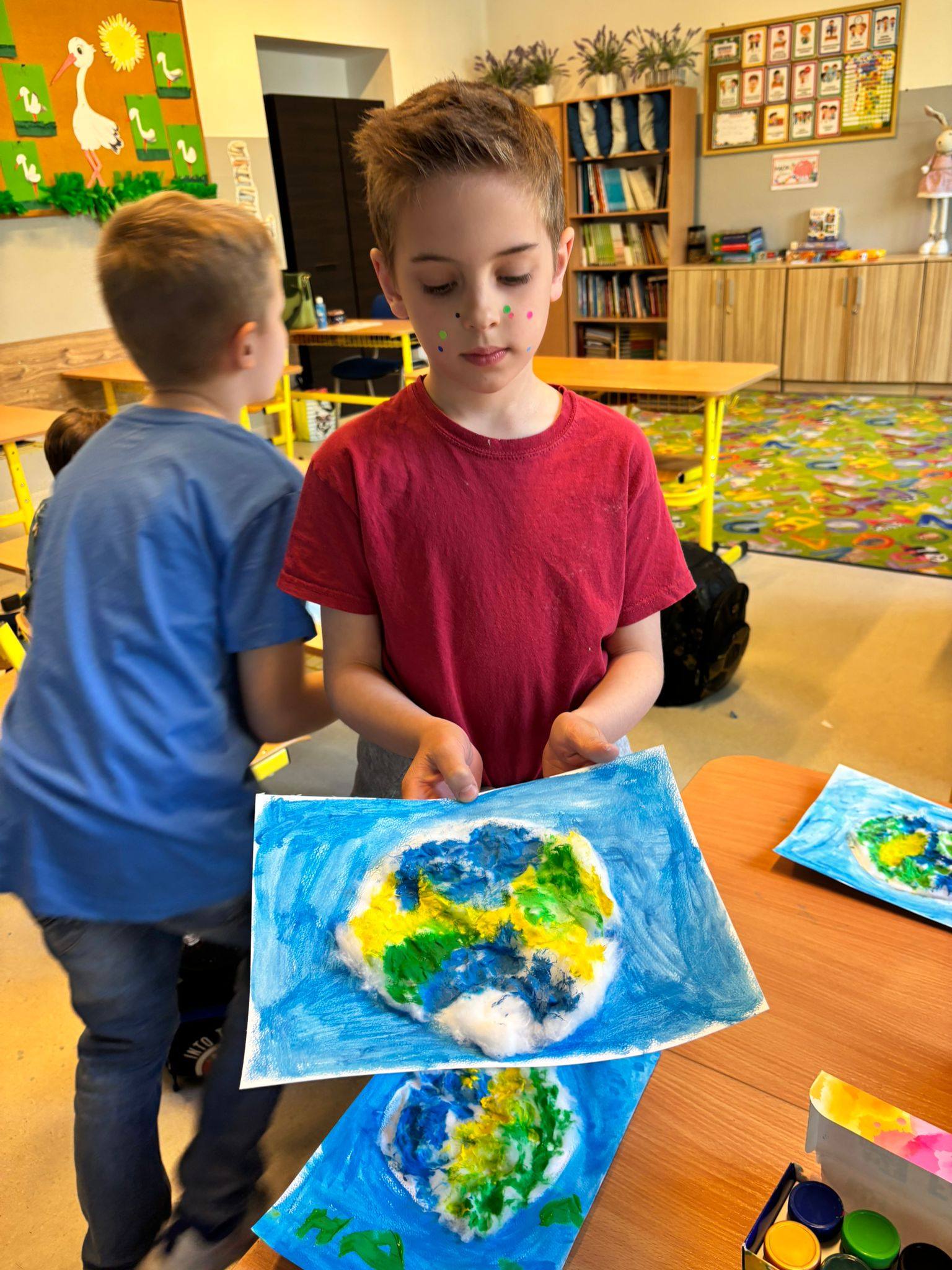 Z okazji Dnia Ziemi nasze dzieci miały możliwość wykonania wyjątkowych plakatów oraz prac plastycznych z wykorzystaniem waty oraz farb tworząc piękne, kreatywne kompozycje inspirowane naszą planetą. W klasie 1b uczniowie zasadzili też roślinki, o które będą teraz dbać