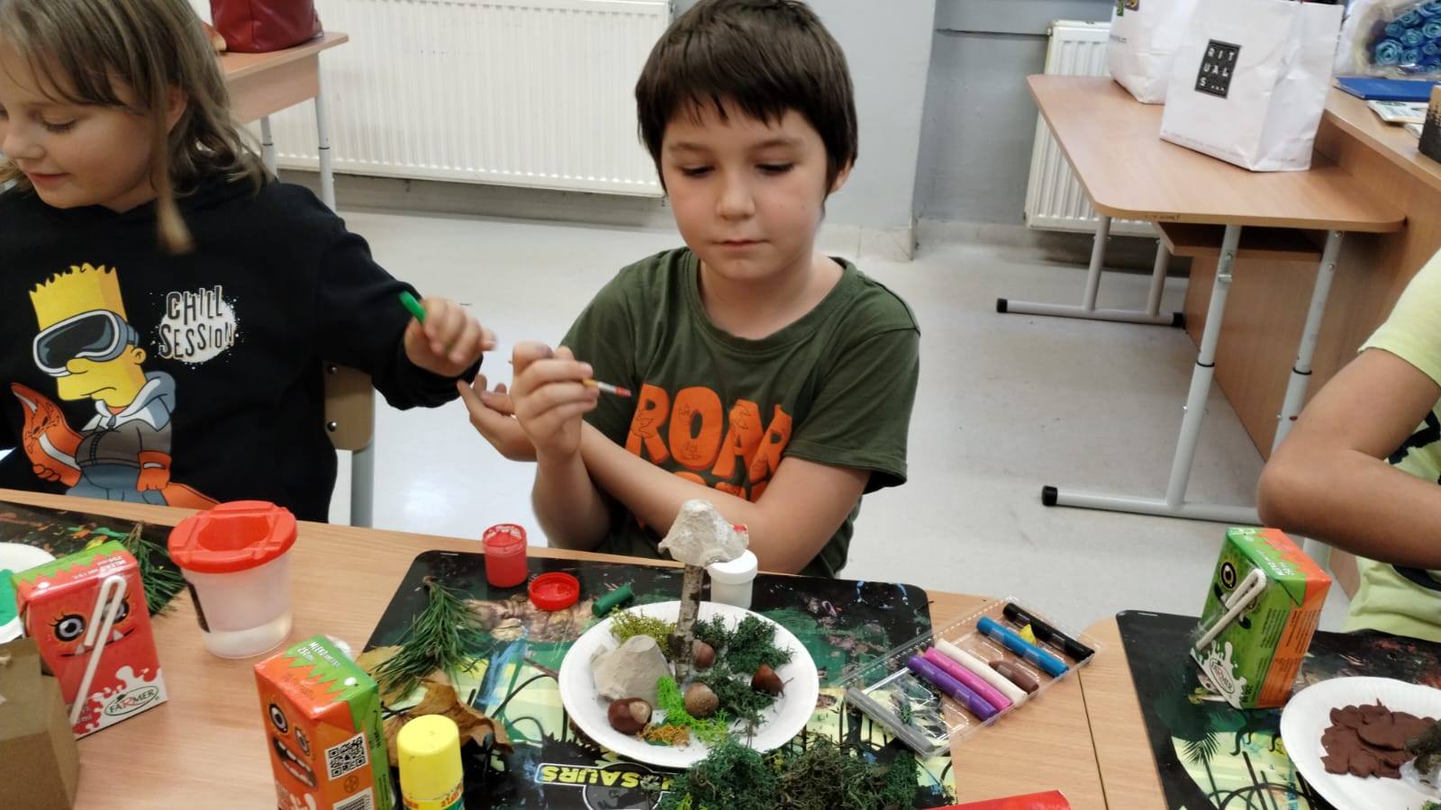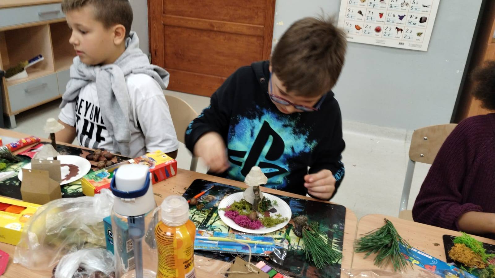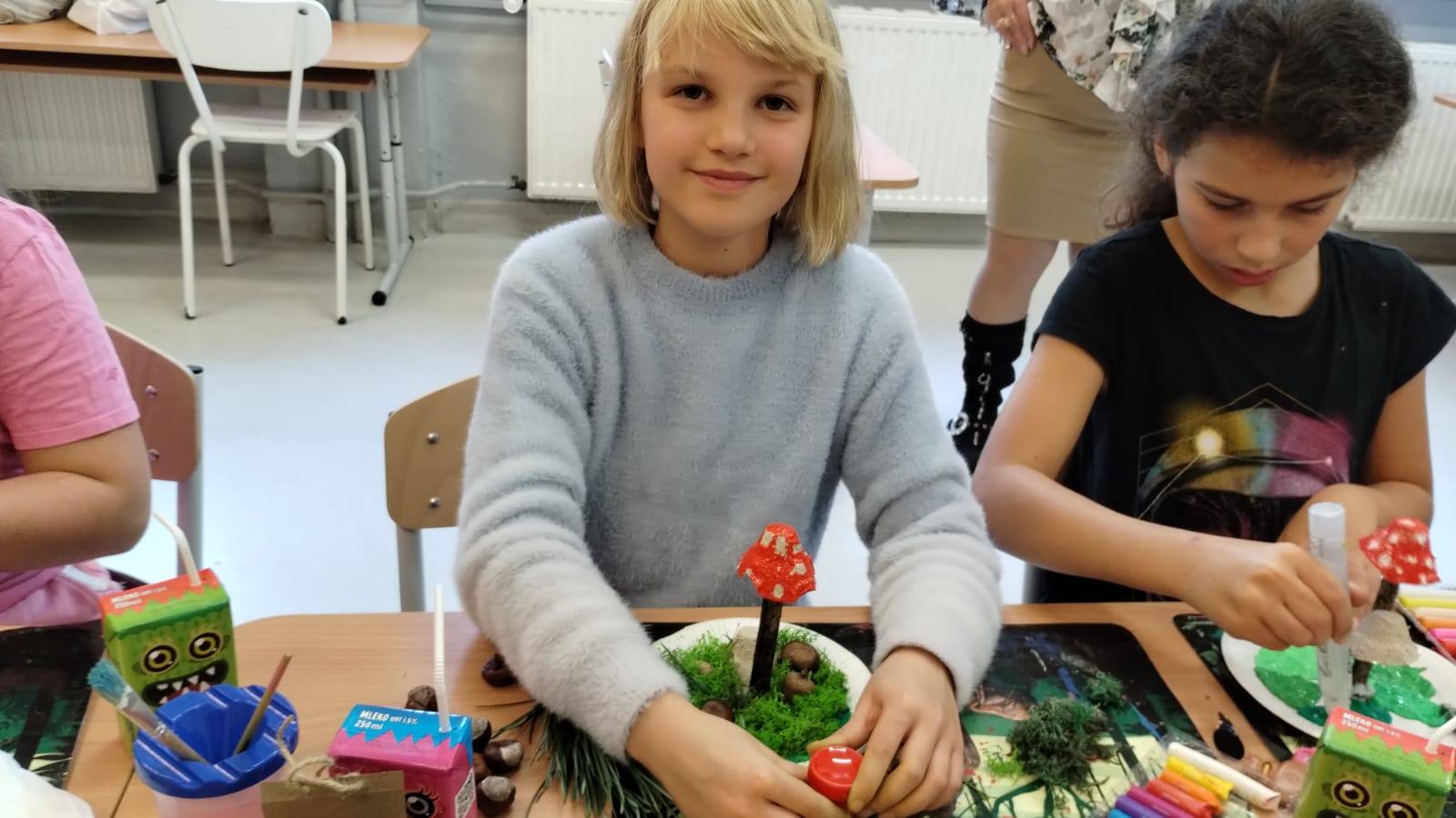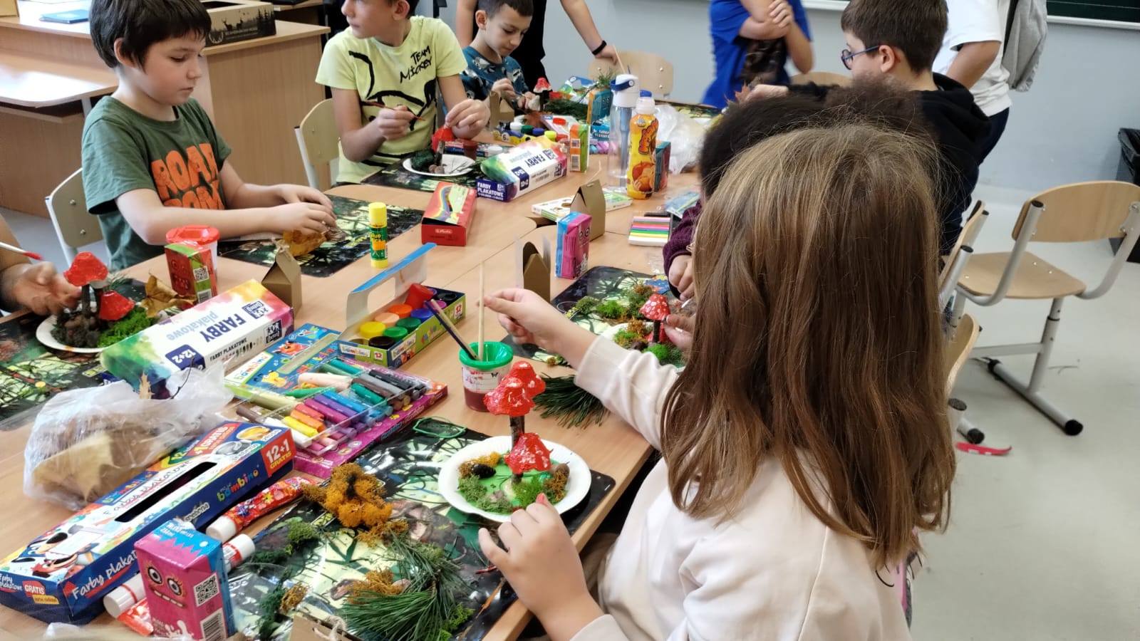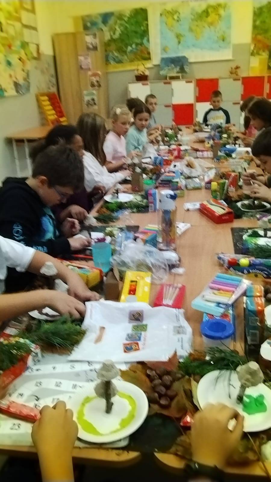 Jesienne warsztaty plastyczne w kl.3b Wykorzystując dary natury i surowce wtórne uczniowie przygotowali piękne dekoracje szkolnych parapetów. Zajęcia były podsumowaniem cyklu zajęć przyrodniczych o lesie. Było twórczo, radośnie i kreatywnie.![]()