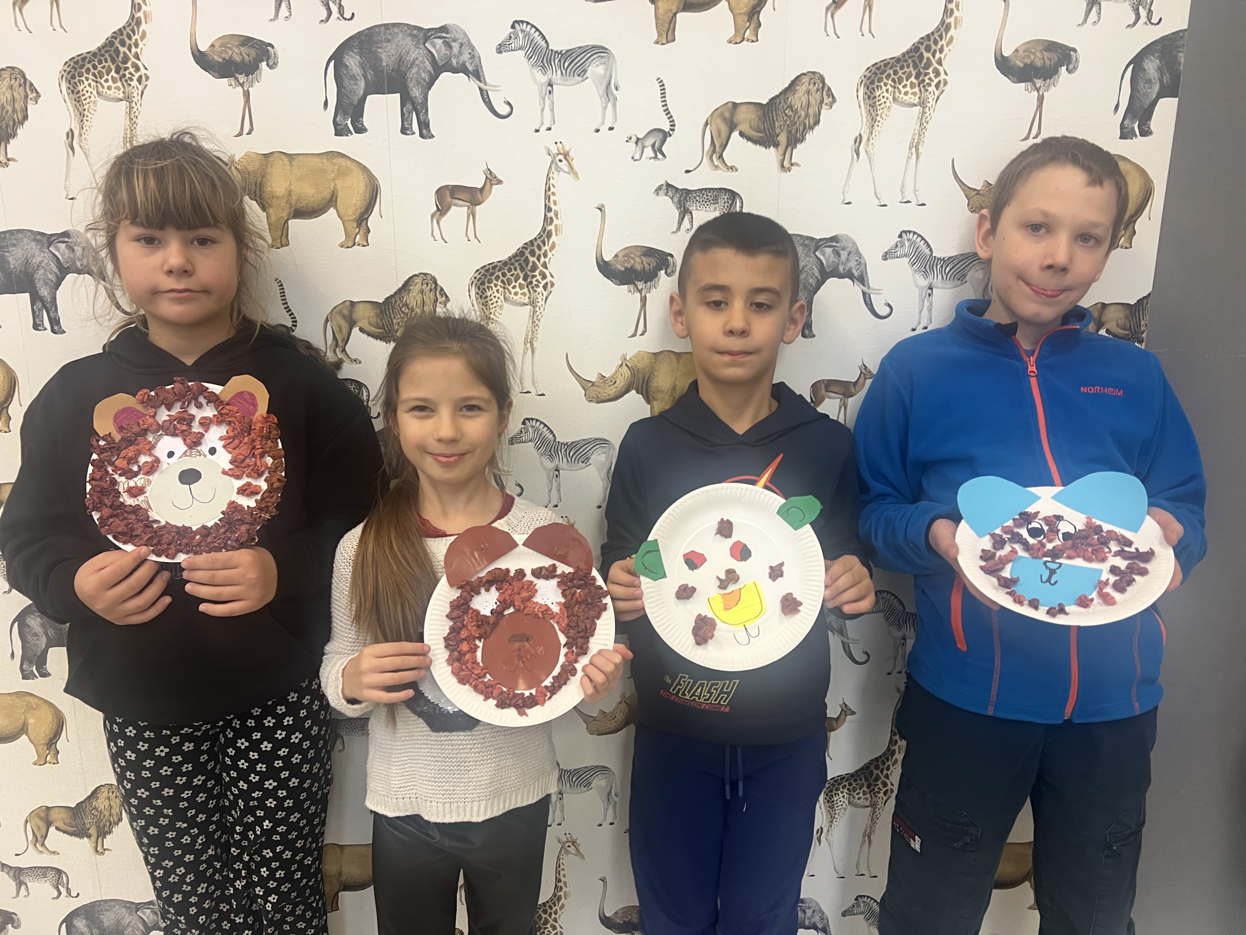 Dzisiaj wszyscy w klasie dobrze się bawili w towarzystwie swoich najlepszych pluszaków. Warsztaty plastyczne z wykorzystaniem talerzyków oraz bibuły przypadły wszystkim do gustu i powstały piękne uśmiechnięte misiowe buzie! Dodatkowo gry i zabawy językowe z misiem w tle dały dużo radości i pozytywnej energii na resztę dnia!