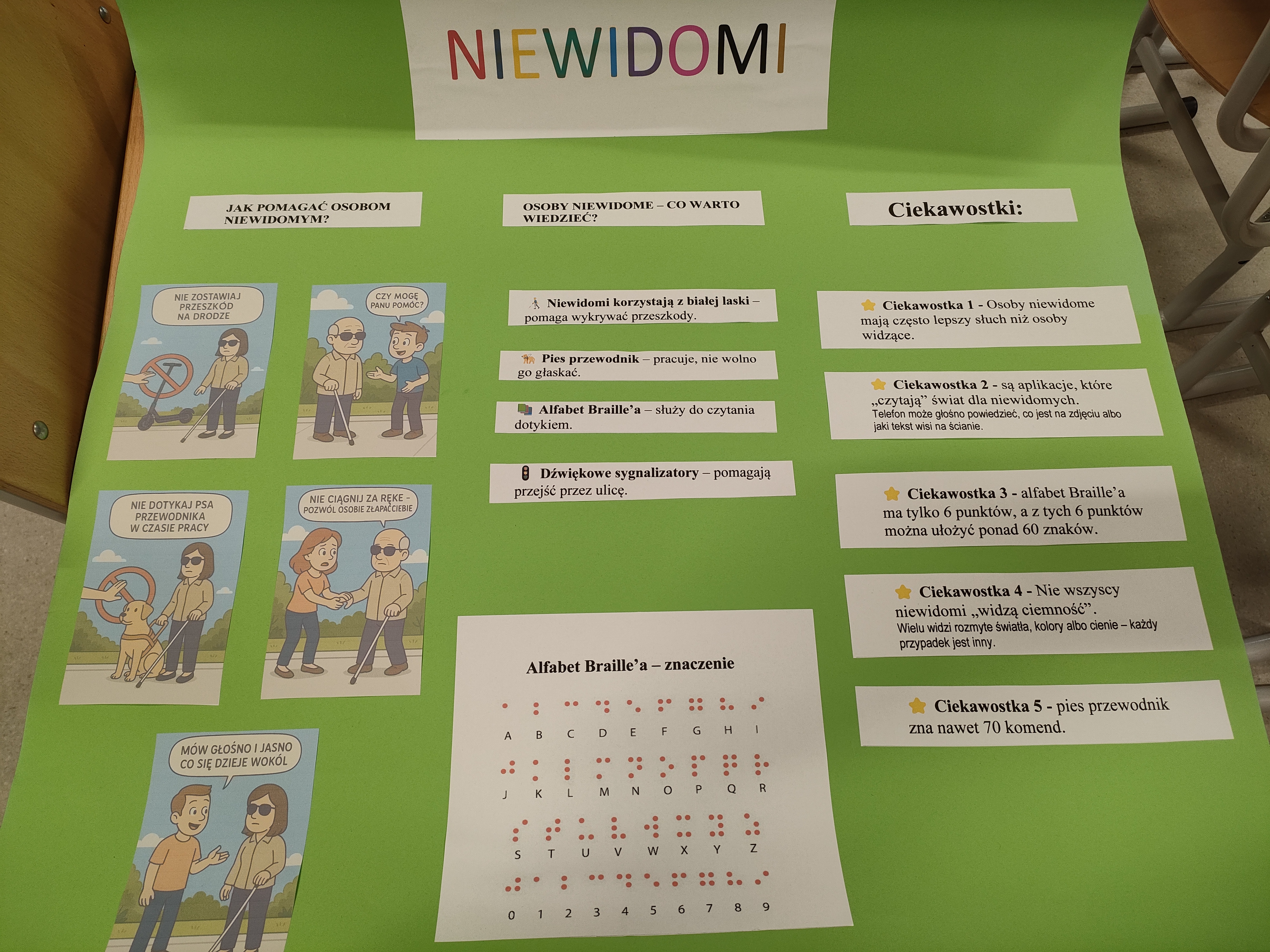 W ramach obchodów tego dnia nasza klasa przygotowała plakat związany tematycznie z wadami wzroku i osobami niewidomymi.